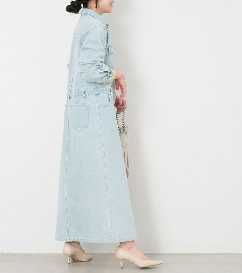 MICA&DEALオリジナルのデニムラインが登場。ジャンプスーツライクなデニムワンピースです。スッキリしたIラインシルエットでありつつ、少しルーズな印象のサイジングが大人の女性にも着やすいポイントです。綿100%のヘビーオンスすぎない生地を使用することで、生地が硬く重すぎない着やすさと体のラインを拾わない仕立てのシルエットのバランスを考えました。加工で風合いを出したアイテムなので、一枚でサラッと着こなすだけで様になります。ロンTやタートル、タンクトップなど、インナー次第で長いシーズン楽しめます。袖を腰に巻くスタイルもオススメです。