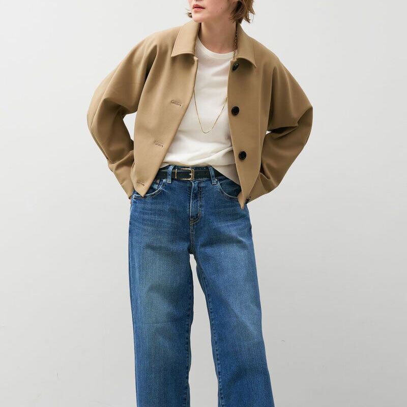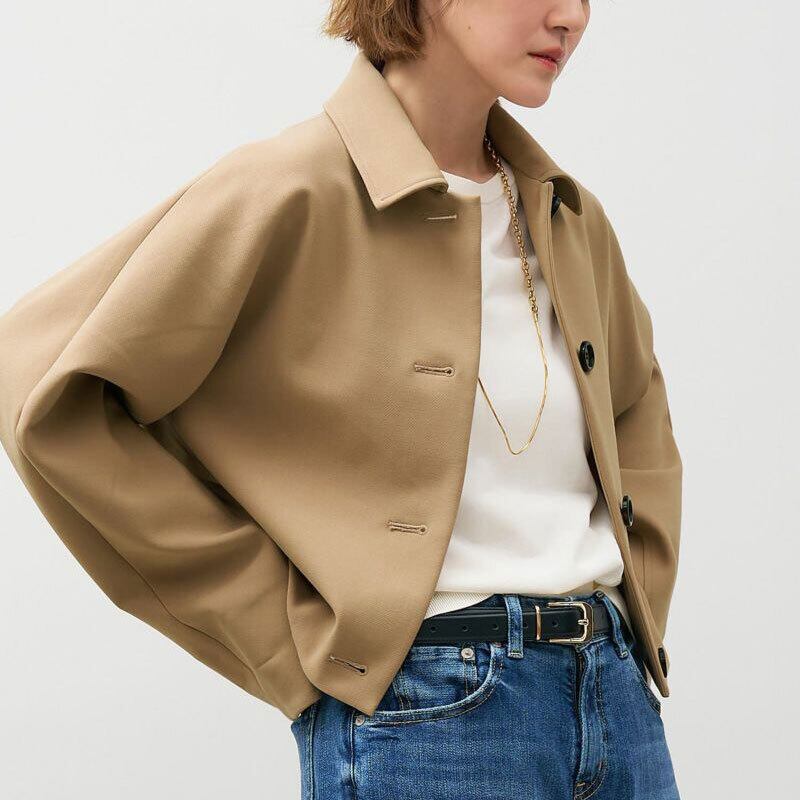 さっと羽織るだけで旬な着こなしが叶うショートステンカラーコート。