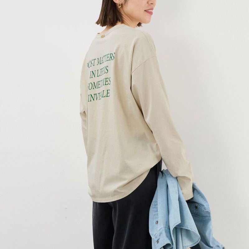 胸元とバックプリントが入った大人が着こなせるロンTです。