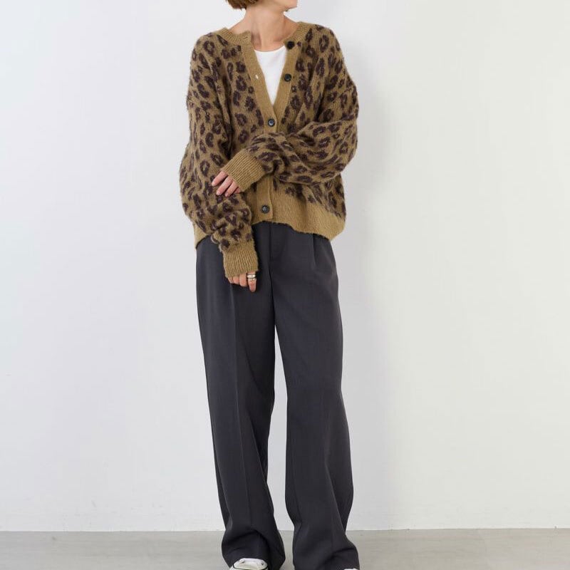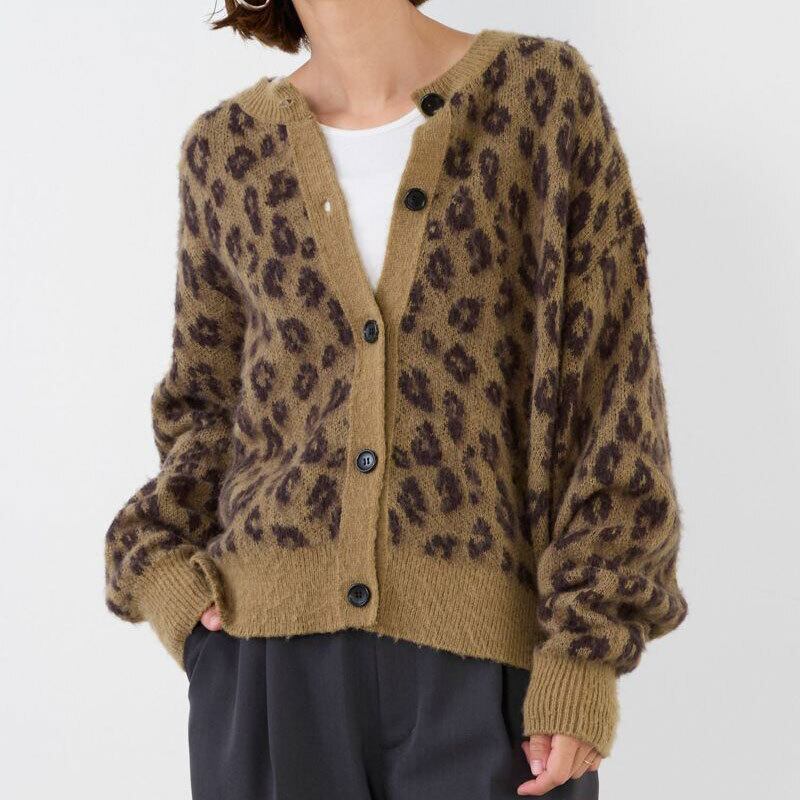 MICA&DEALオリジナルデザインのレオパード柄をジャガード編み地で表現した存在感のある一枚です。