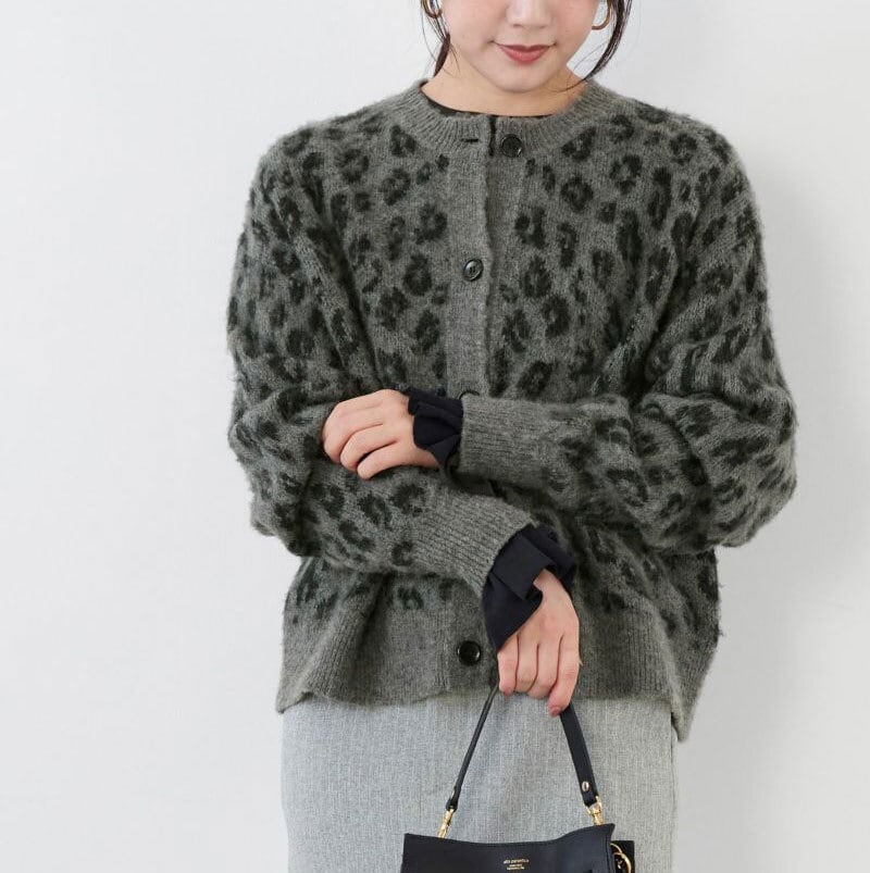 MICA&DEALオリジナルデザインのレオパード柄をジャガード編み地で表現した存在感のある一枚です。