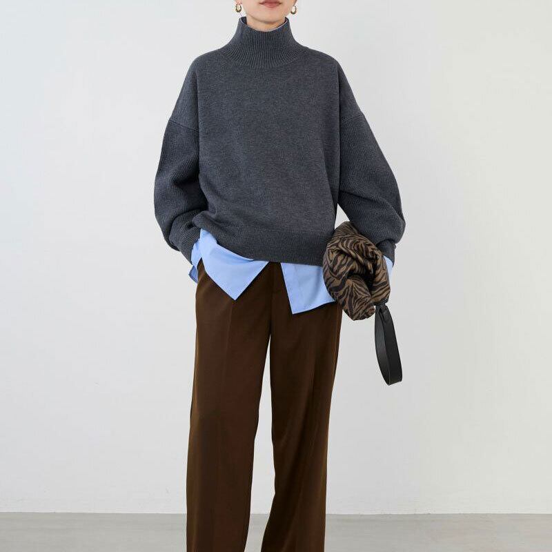 程よくゆとりがあるニットなので、スカートにもパンツにも合わせやすいです。
