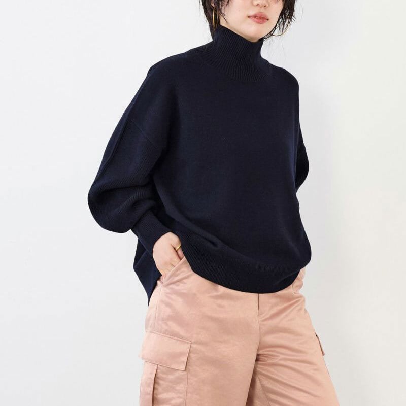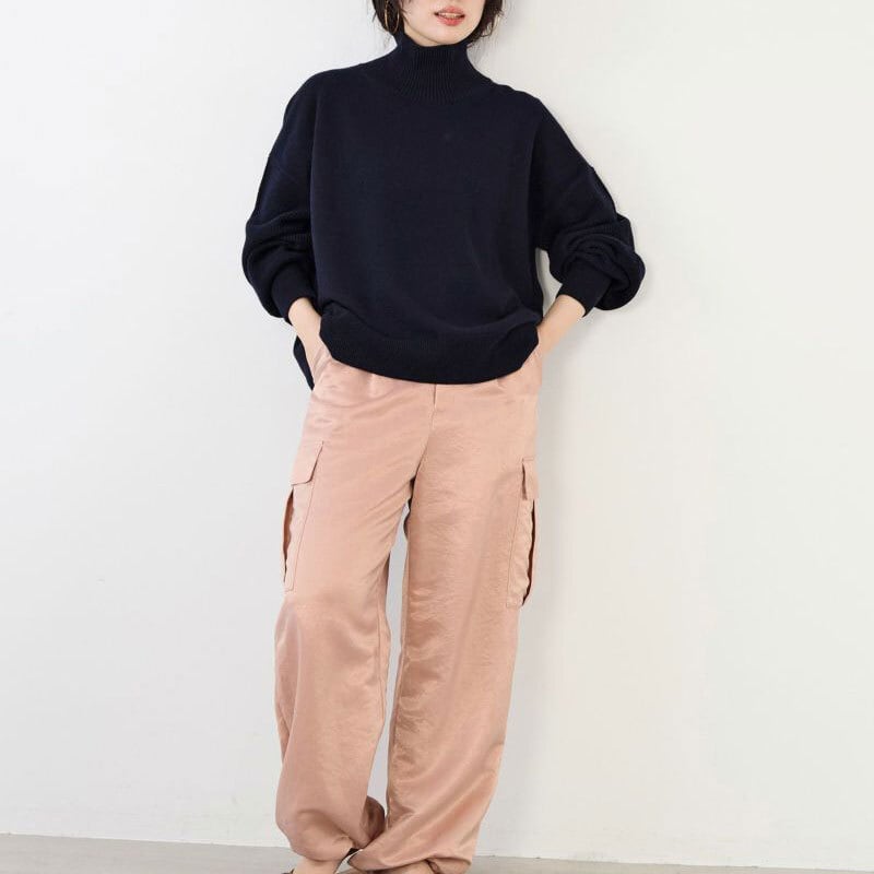 程よくゆとりがあるニットなので、スカートにもパンツにも合わせやすいです。
