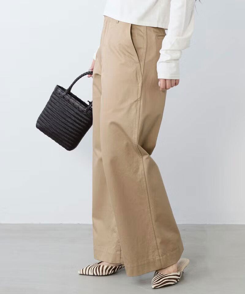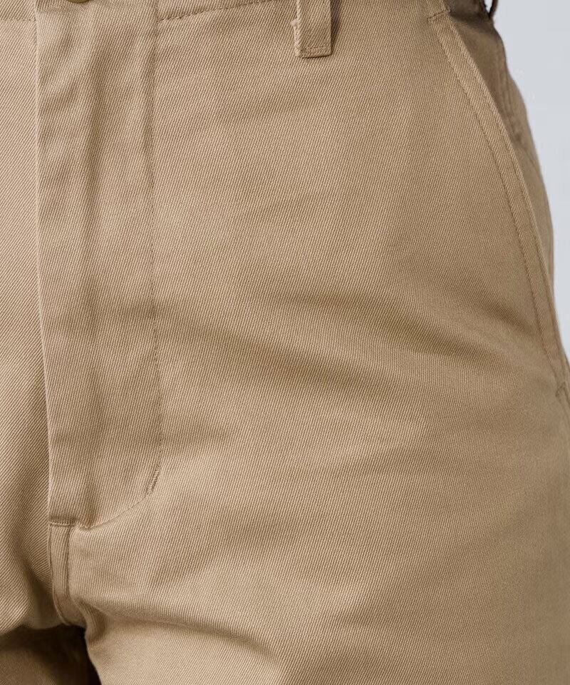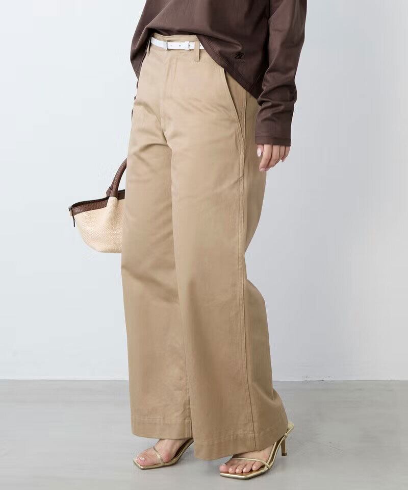 コットンでありながら微光沢がカジュアルになり過ぎない印象のチノ素材です。
