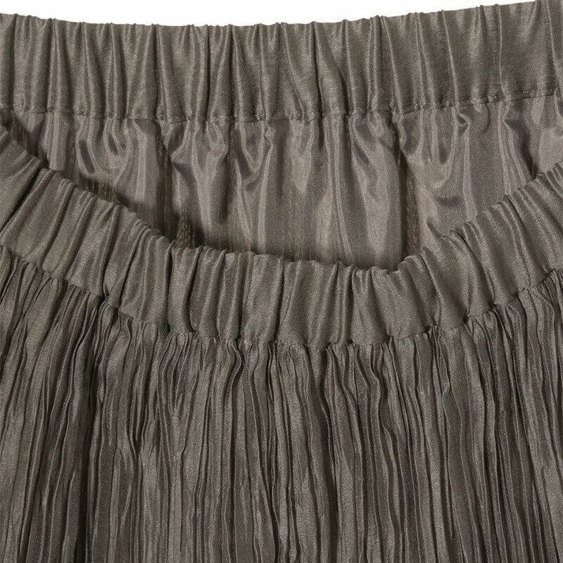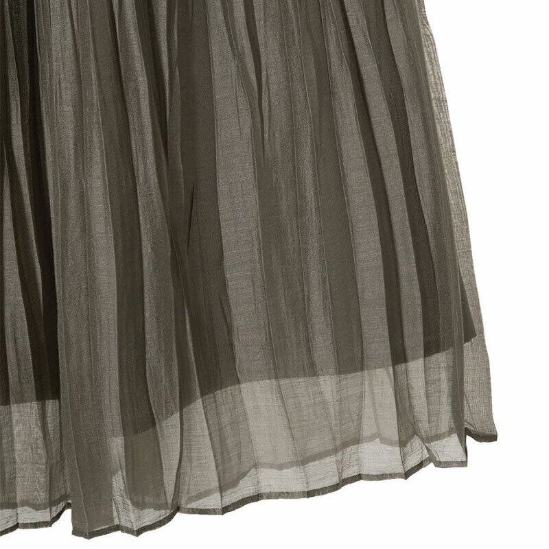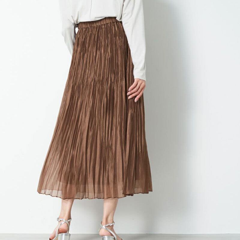 リヨセル/ポリエステルの程よく柔らかいオーガンジーを使用したランダムプリーツスカートです。腰周りは細かなプリーツのためスッキリとした印象で、軽やかに揺れるシルエットが美しいです。ウエストは着脱しやすいゴム仕様で着心地も楽な一枚です。シックな色味や落ち着いたロング丈が大人の装いに大活躍します。 幅広いデザインのトップスと相性が良く、オールシーズンお使いいただける万能アイテムです。