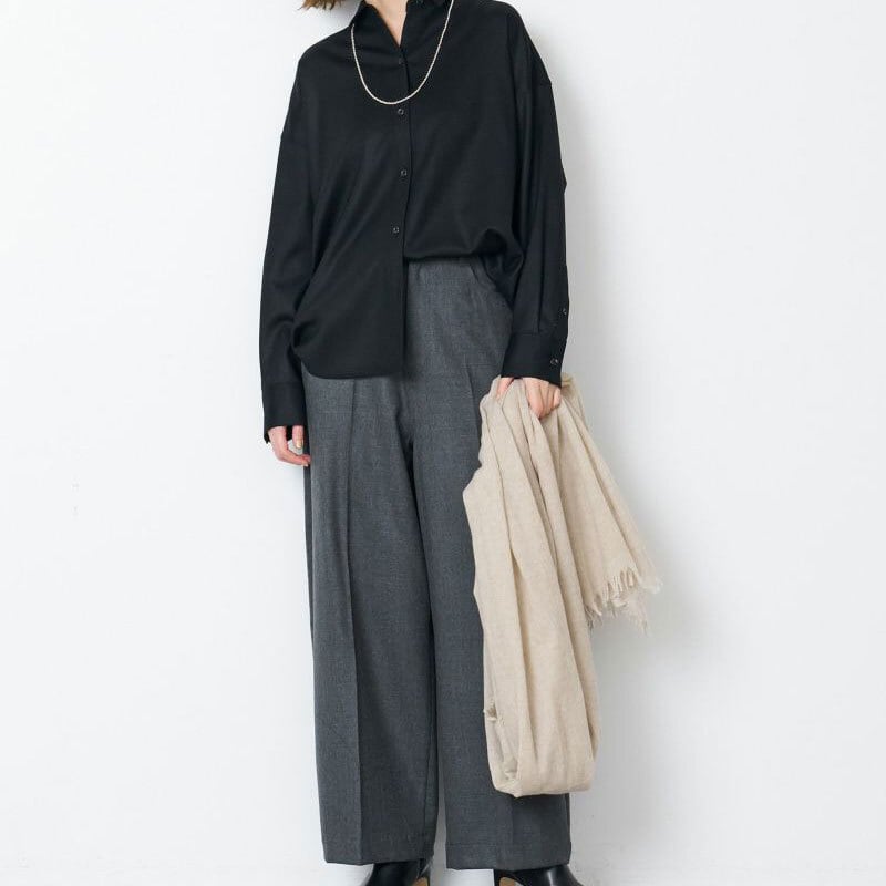 キレイなサキソニー生地にカジュアルなデザインの5ポケットパンツのデザインを落とし込んだ4ポケットパンツ。今っぽい少しワイドなシルエットは、履くだけでスタイリングに鮮度が出ます。着丈が長い場合は裾を折ってダブル風に着ても着れるのでカバー出来る身長も広がります。